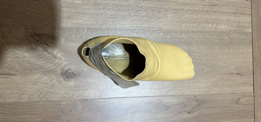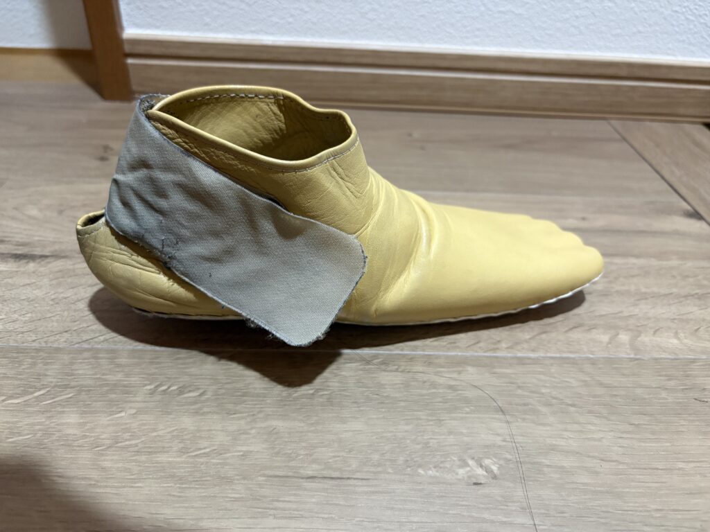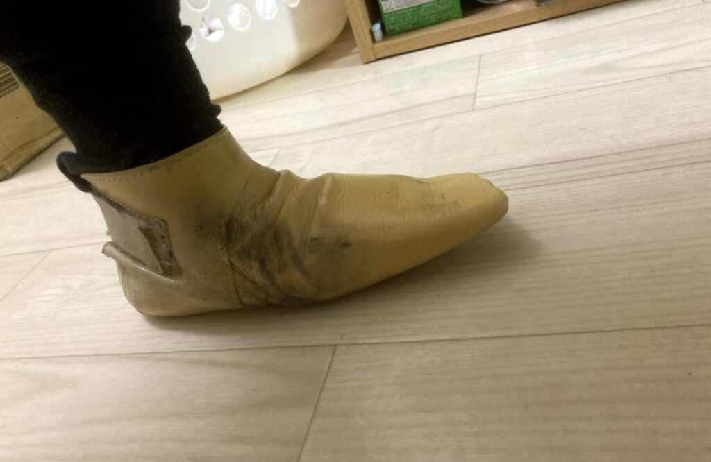足根中足義足が完成するまでは、靴の足先部分に綿をギュウギュウに詰めていましたが、やはり義足の方が安定します。